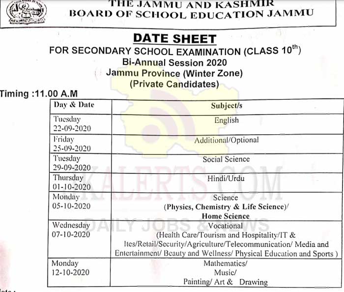 Dear candidates, the jkbose 12th date sheet 2021 will be released online in the coming days.